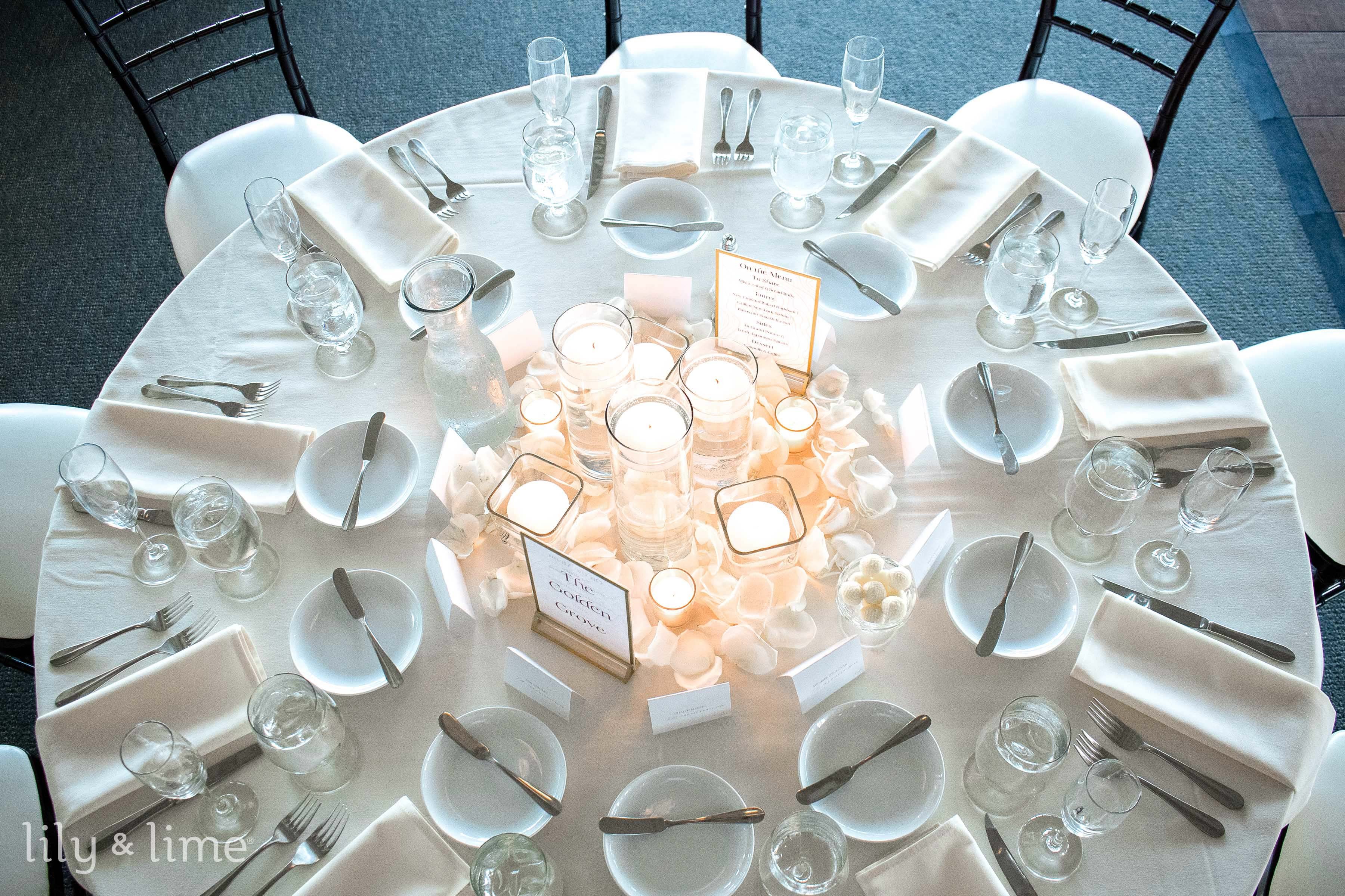For a touch of whimsy and romance, consider arranging floating candles and white petals in clear bowls. The gentle flicker of candlelight will dance across your guests' faces, casting a warm, inviting glow. This idea is perfect for evening receptions, where the magic of light plays a key role in setting the mood.