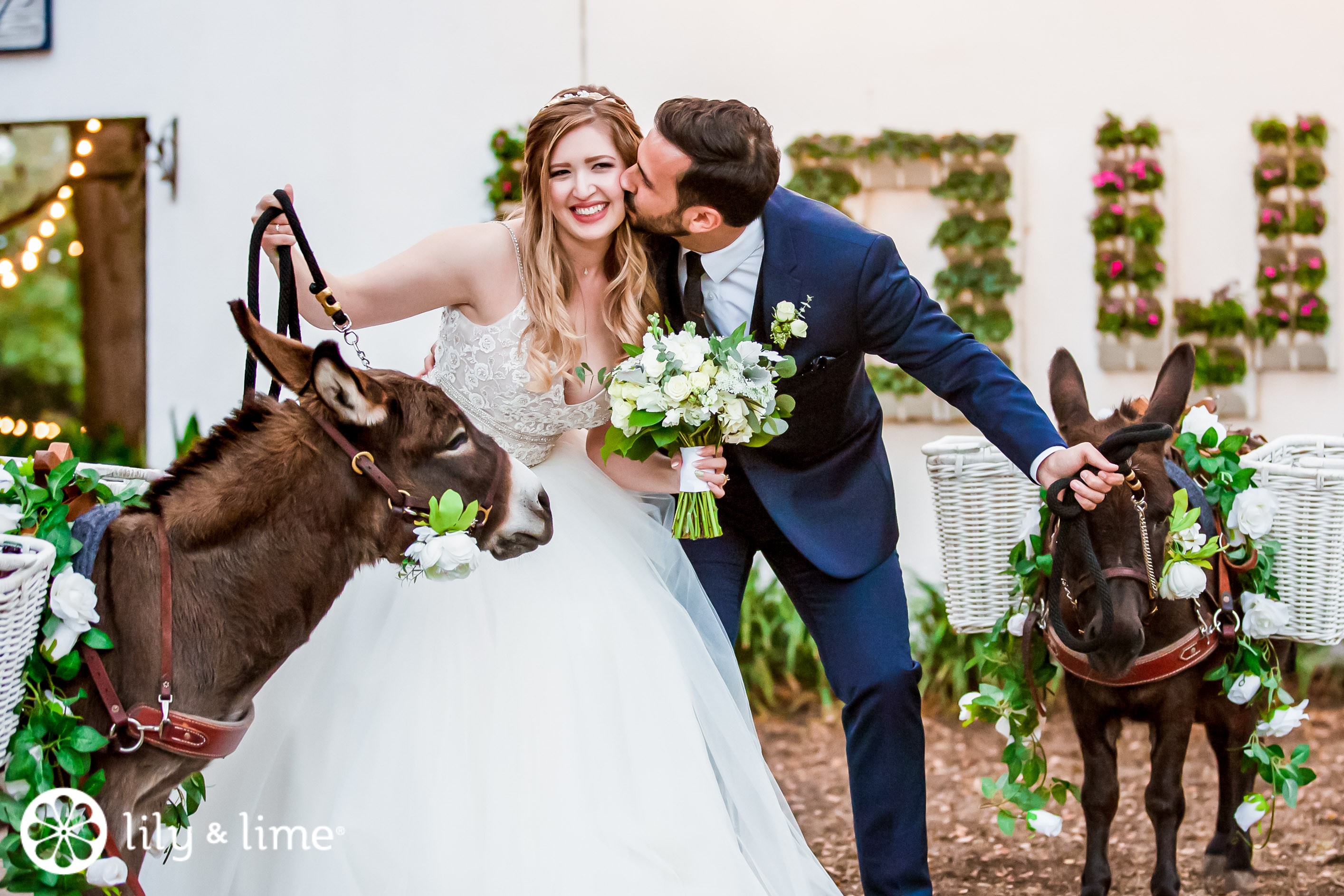 Real animals: While animal accents are great, there are several ways you can incorporate real-life animals into your wedding day as well. If you are hosting your wedding in a rural setting or a wildlife-heavy destination, you can have friendly furry buddies to join your wedding day, and make it instantly better. Of course, you will have to look into whether it is safe to have them there accessible to your guests, but having a giraffe, a horse or an alpaca grace your wedding day is something that will be forever remembered and talked about within your guest circle. Not only does it make an incredibly memorable experience for your guest, but it also makes for a really great photo opportunity. There are several different ways a couple can have animals be a part of their wedding day, while still keeping the environment safe and secured both for the animals and the guests.