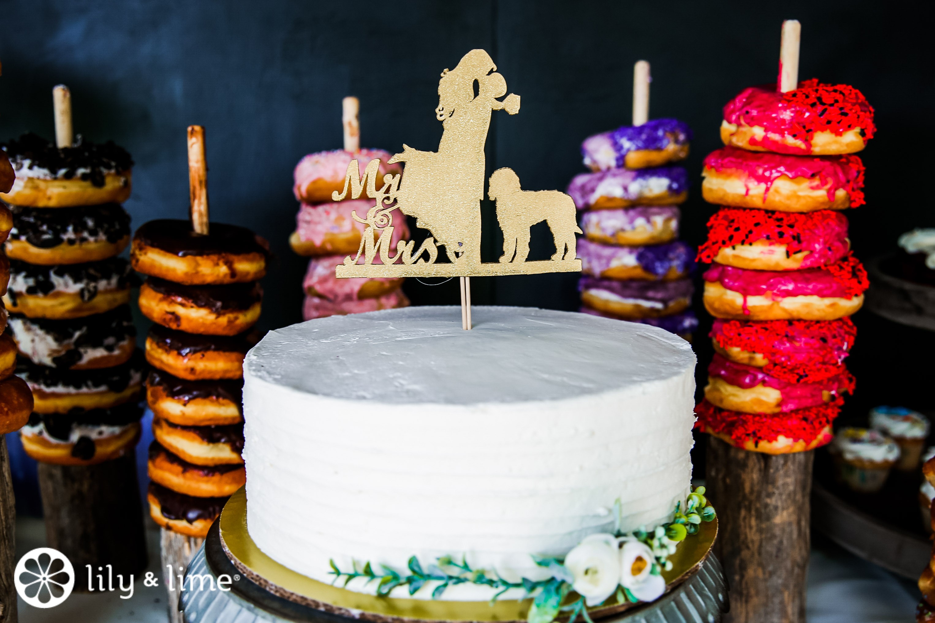 On the cake: Another special way to commemorate your pet on your wedding day is by having them featured on your wedding cake! Whether it is a paw print on the cake, or personalized pet cake toppers, having your pet featured on your wedding cake is a huge way to show how much you appreciate them. Whether it is your pet dog, a cat or your pet bearded dragon, a good confectioner will be able to incorporate it on your wedding cake without breaking a sweat.