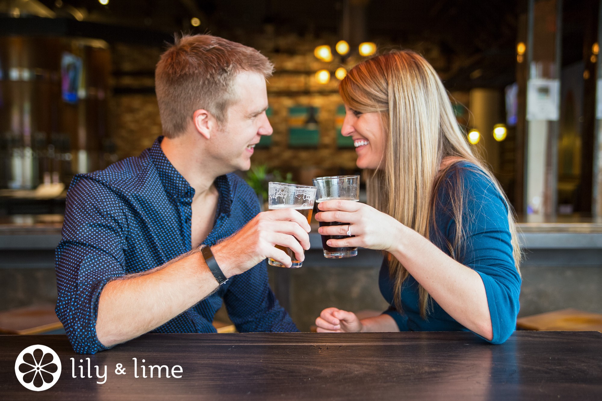 When couples are comfortable and relaxed, they are bound to have some of the most remarkable engagement photos! And this truly shows with Ashley and John. Hence why we loved that they chose a place where the chemistry began. These two had no problem warming up to the camera after playing some Jenga and enjoying candid conversation over their favorite drinks. They tied it all together by coordinating in “something blue” - Ashley in a blue dress and John in a printed button down.