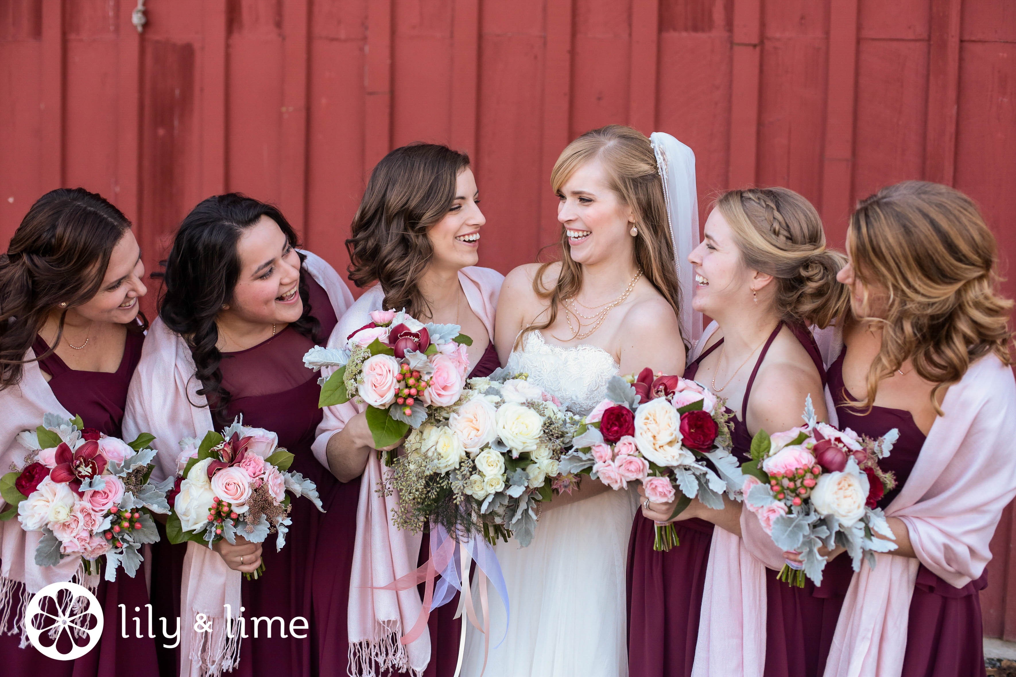 Strong and vibrant colors can come off as being too bright and distracting in wedding photos. Try to avoid colors like red, hot pink or magenta, orange, and lime green. Instead, opt for a lighter or darker tone of those colors that you love. For red, move more towards a burgundy shade. If you love pink, we recommend more blush and peach hues.
