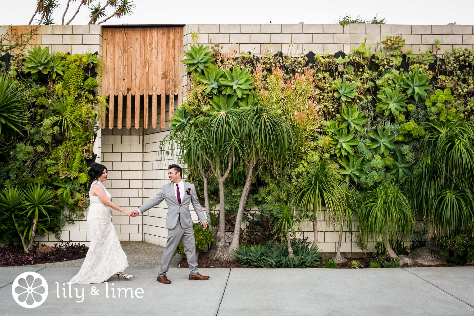Lucy and Matthew exchanged their vows at the SmogShoppe, one of the most sustainably designed urban spaces in both Los Angeles and the United States. The venue is known for its desert plants, vertical gardens and chic vintage furnishings - all of which were captured in full by the couple’s Lily & Lime wedding photographer.