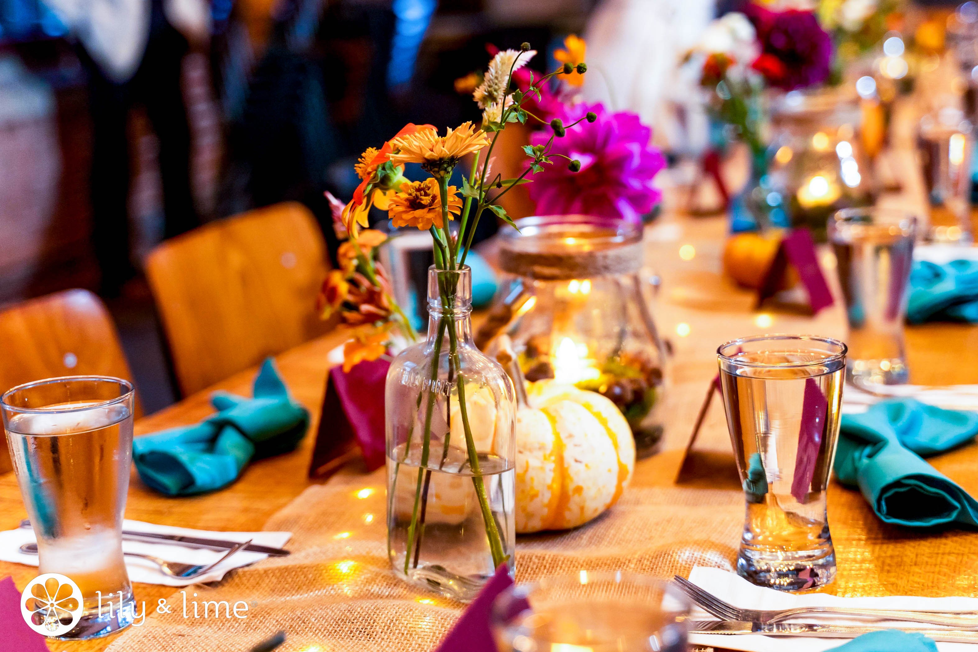 Burgundy: This may be the most popular addition to the fall color palette, but we believe it's for good cause. There are countless ways to incorporate a classic burgundy into your autumn wedding. With big, bold splashes in your floral choices and wedding decor, burgundy can be the main hue. It can also be used as a detailed accent with warm tones like red and peach to add contrast.