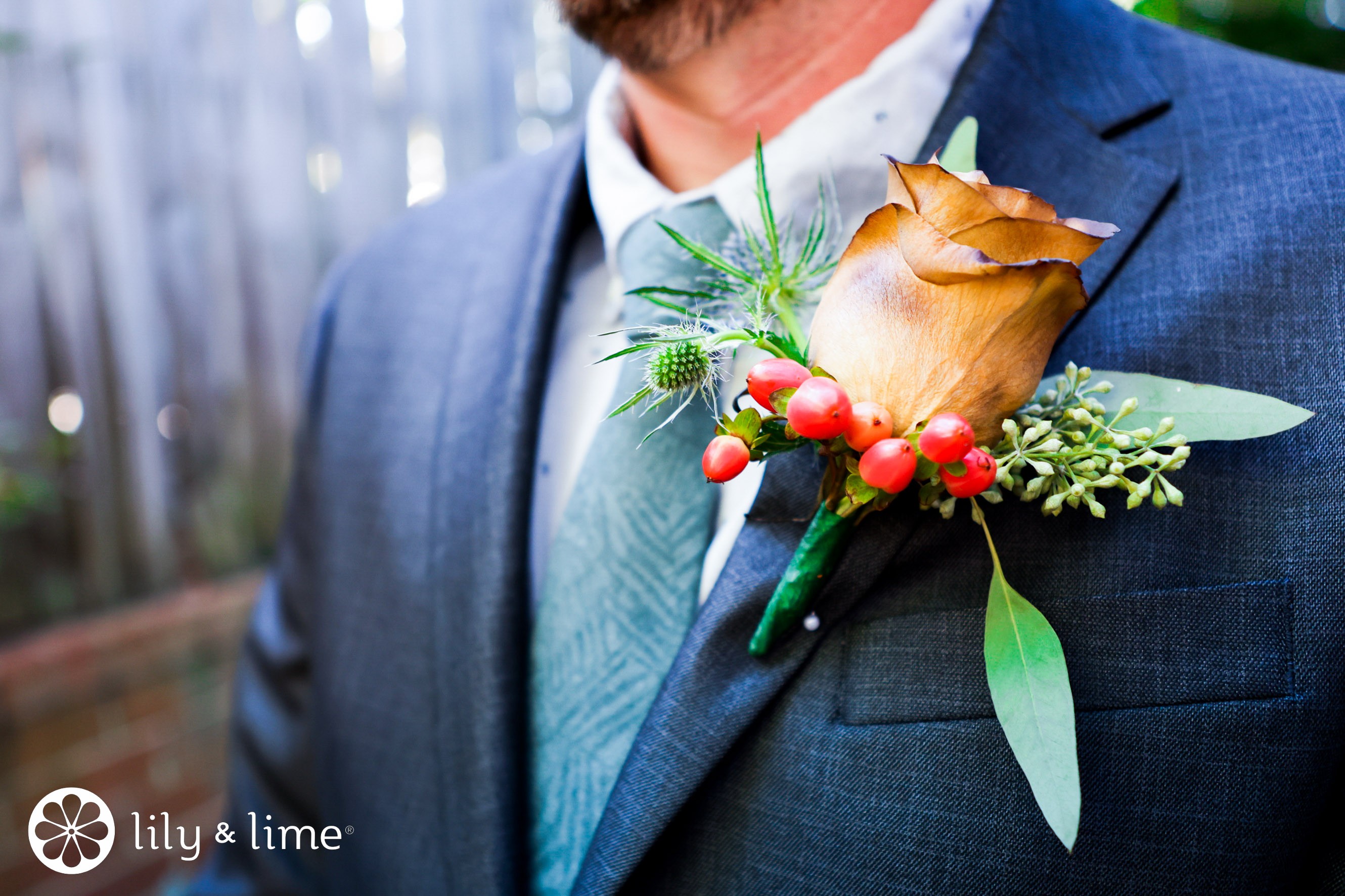 Apricot: When you think of fall hues, apricot may not be the first color that springs to mind. However, when paired with unexpected splashes of burgundy, like in figs and chocolate, this traditional spring hue feels seasonally appropriate. Try putting an apricot in a bouquet or using it as a color for a ribbon.
