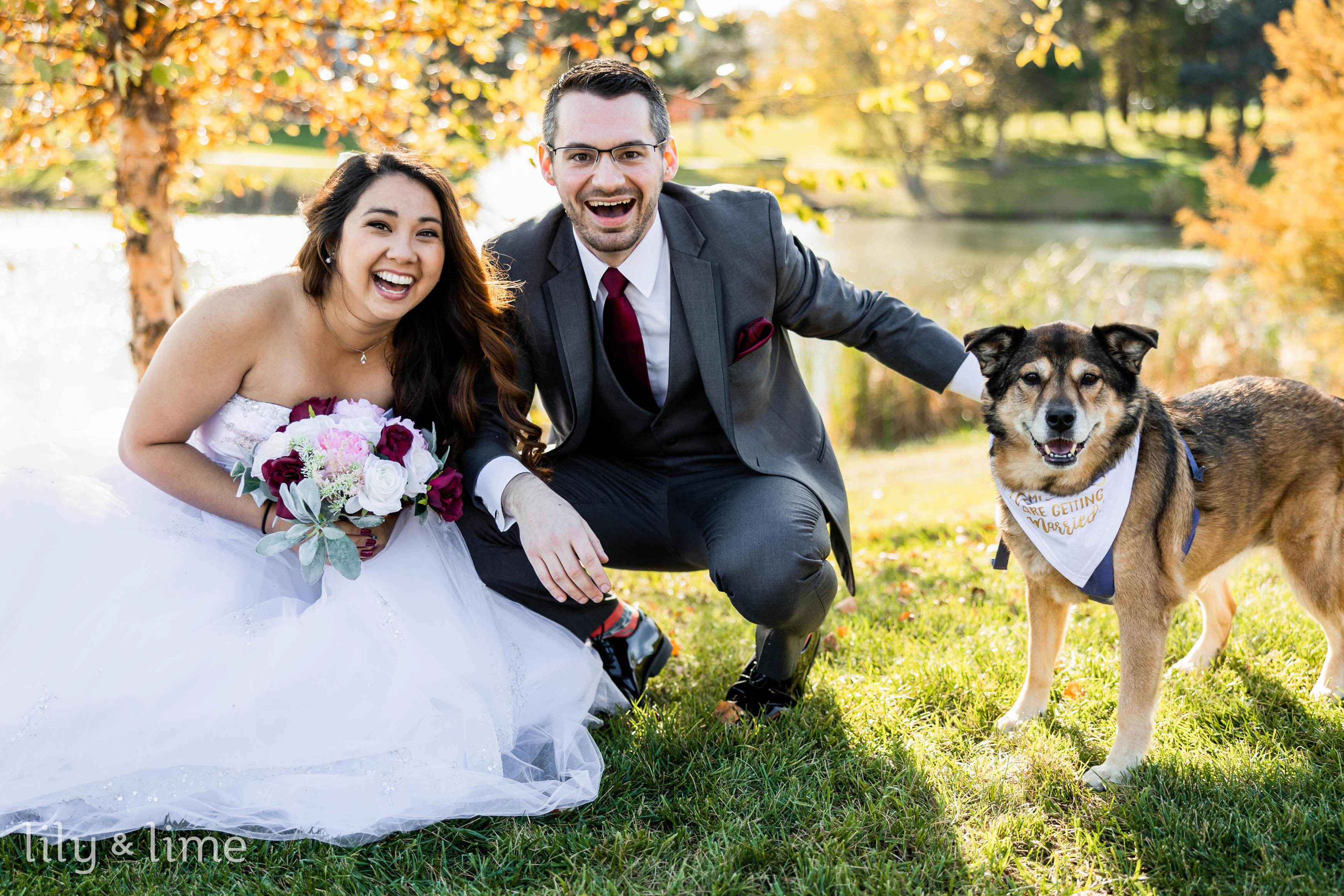 Many brides expressed that their favorite pet wedding portraits were the ones featuring their dogs! These dog wedding portraits hold great significance as cherished mementos, considering that our dogs often have shorter lifespans than we do. It's crucial to find a professional dog-friendly wedding photographer who will bring the same level of joy and professionalism to capturing the dogs as they do to the rest of the wedding party. For instance, your dog-loving wedding photographer might come with her squeaky toy in their camera bag, which they don't mention to anyone during the wedding planning! During portrait sessions with the bride, groom, and dogs, they can resort to using the squeaky toy to regain the dogs' attention. They should understand that weddings can be distracting for dogs and ensure that the dogs look directly into the camera when they take the precious dog shots!