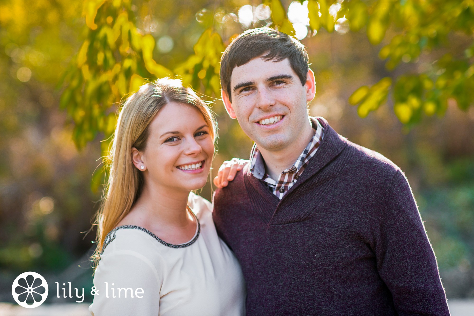 The soon-to-be newlyweds sported the perfect fall look: Richard in a Burgundy sweater and Jen in a white long sleeve shirt - a casual nod to the white dress on her wedding day! At the end of the session, the couple threw on their peacoats for an extra fall touch.