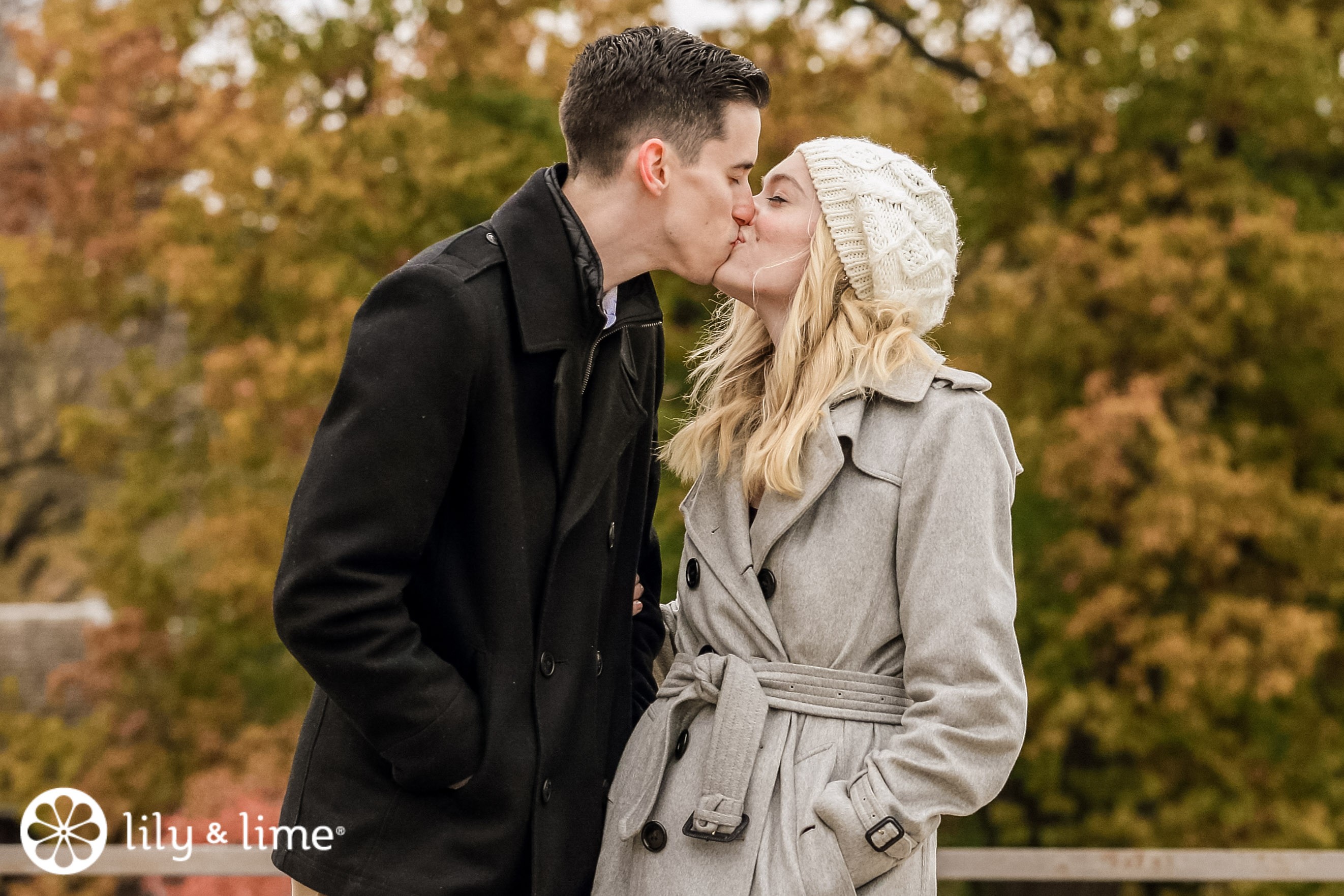 From posing romantically to all cliche, Joseph and Jill left no stone unturned with our couple photographers. They laughed, they hugged, they shared a romantic kiss against the beautiful panorama of the Windy City. and our affordable Chicago engagement photographers did not miss any moment of their beautiful day! Joseph actually went on his knees and asked for Jill's approval to which she said yes just to strike a perfect wedding proposal pose. Jill never missed out on a moment to flaunt her beautiful and precious single studded diamond ring shining gracefully on her ring finger! The green, orange, and yellow-colored leaves in the background lent an arresting backdrop for a beautiful engagement photography session. Although it was a winter engagement photo shoot, the photos clicked by our professional wedding photographers will make you witness the beautiful colors of the fall season! Yes, you read that right! Their photos did have all the shades of a fall palette. So, yes we can say that Joseph and Jill’s Chicago engagement portfolio features a flawless combination of winter and fall love! Without any doubt, we can say that each and every aesthetic aspect of this beautiful day was creatively and thoughtfully documented by our affordable Chicago photographers.