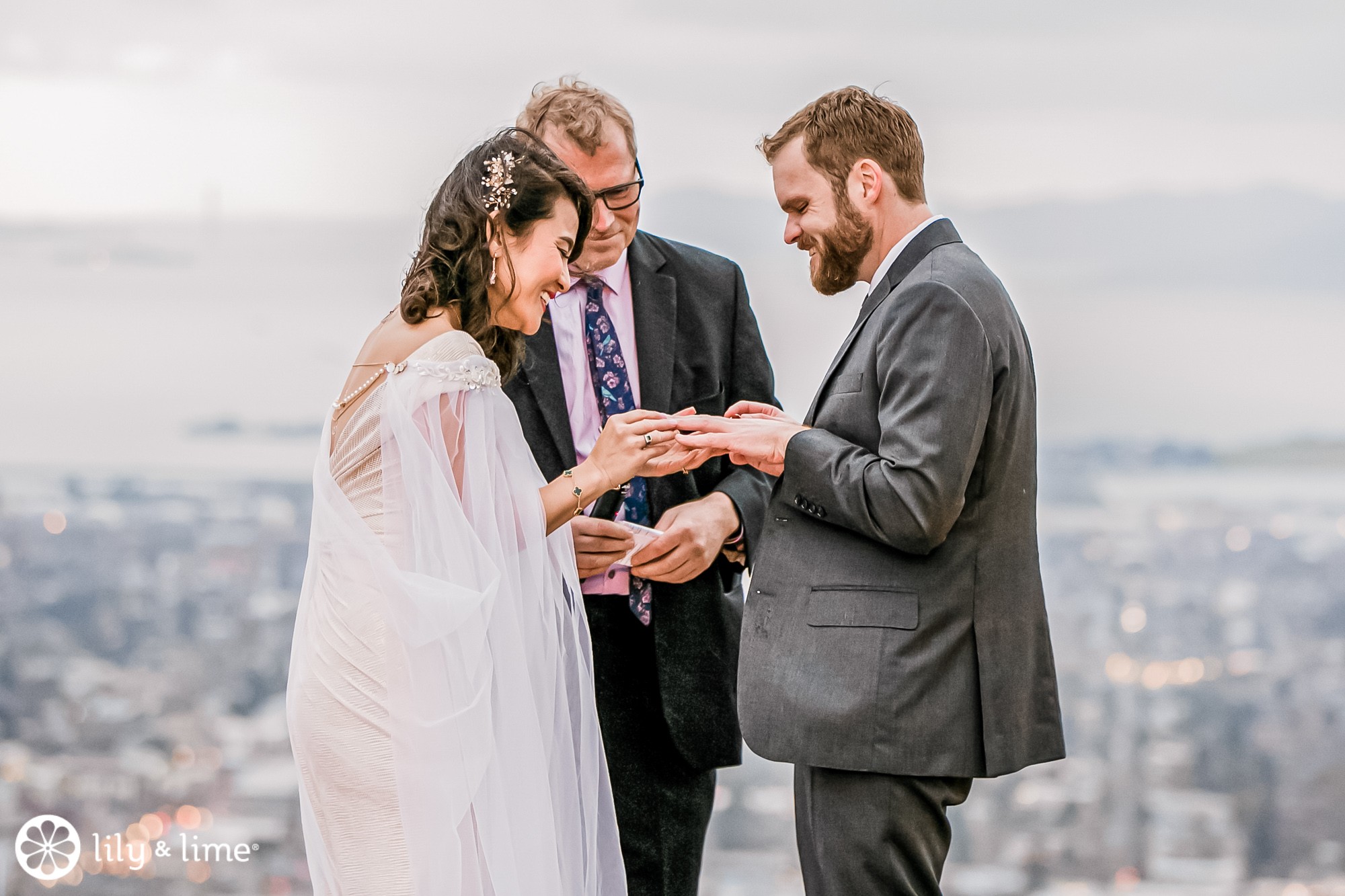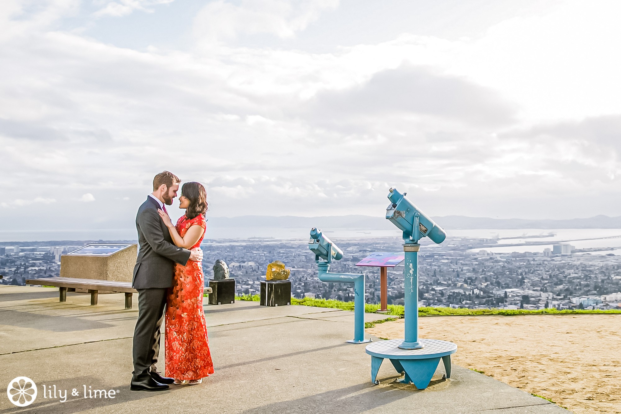 For the wedding ceremony and reception, all headed to the Lawrence Hall of Science. The spectacular wedding venue offered breathtaking panoramic views of the Bay Area. It would be unfair to miss out on capturing the magnificent views from the venue. Lucy and Isaac posed with all their heart and we are still swooning over the photos! The clouds, the greens and the panoramic views of the city provided a great backdrop. Isaac put on his charcoal-colored coat with a tie to complete his wedding look.