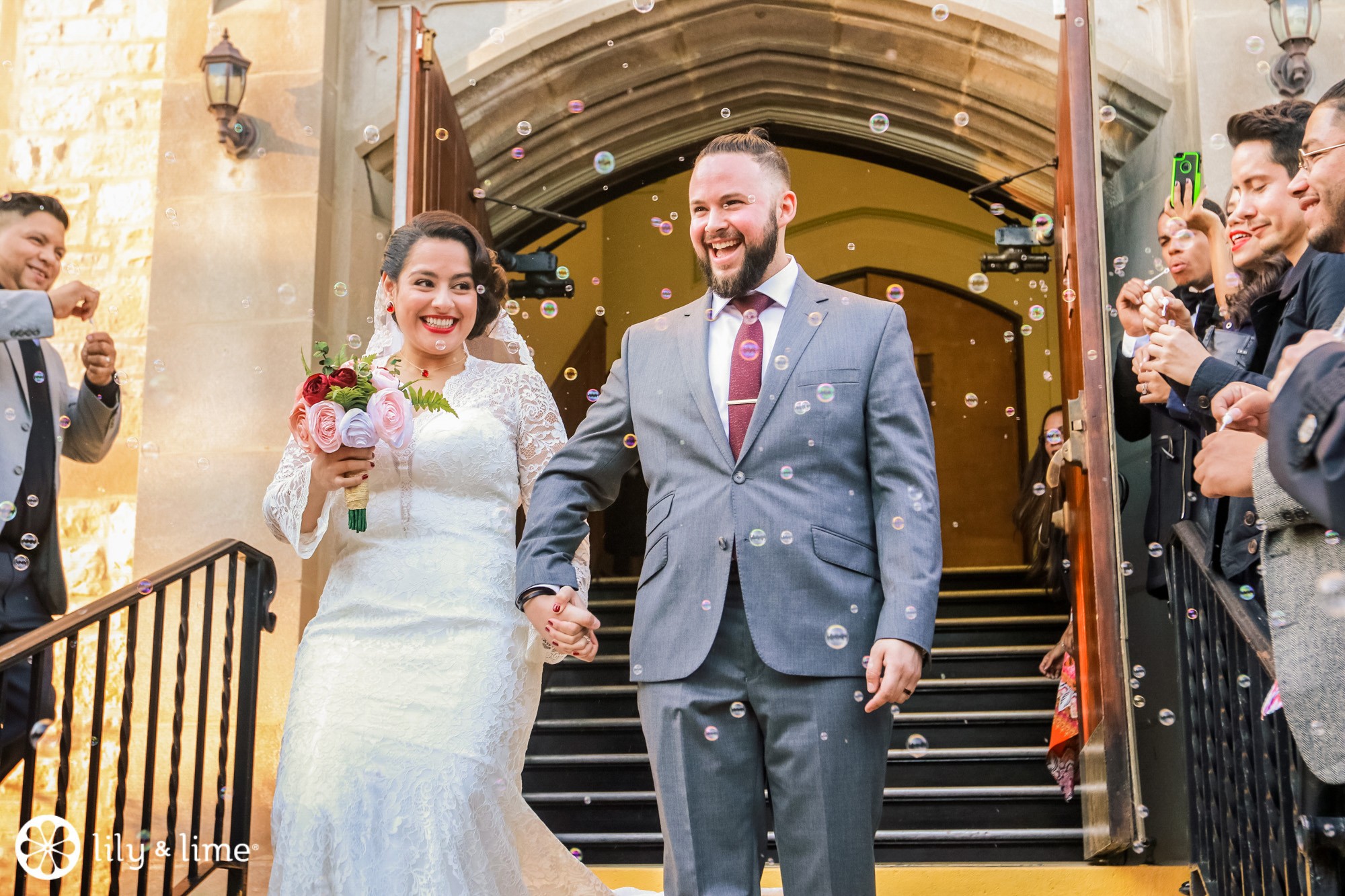 Give your guests bubbles to blow as you exit. It’s whimsical and a little something unexpected. Everyone loves bubbles! We love how they float up and frame photos.