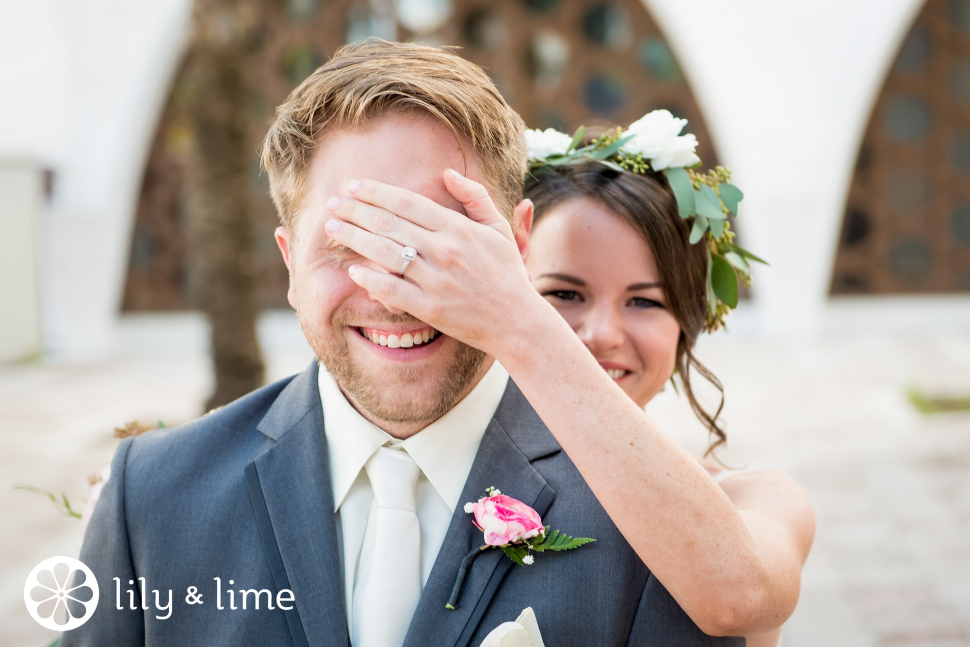 It never hurts to play a little peek-a-boo before the ceremony. The bride covering the groom’s eyes add a different yet playful perspective for their wedding photography.