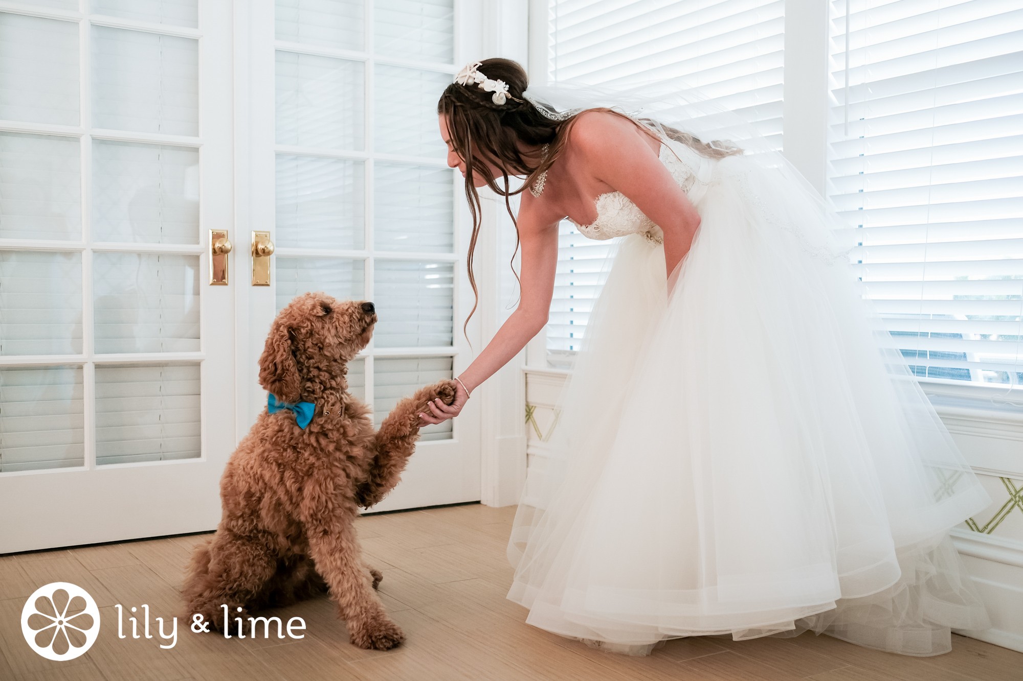 More and more, we are seeing couples including their dogs in weddings. Needless to say, we love it. Having your sweet pup with you while you get ready not only makes for a great photo-op, but he or she can help you curb those wedding-day jitters.