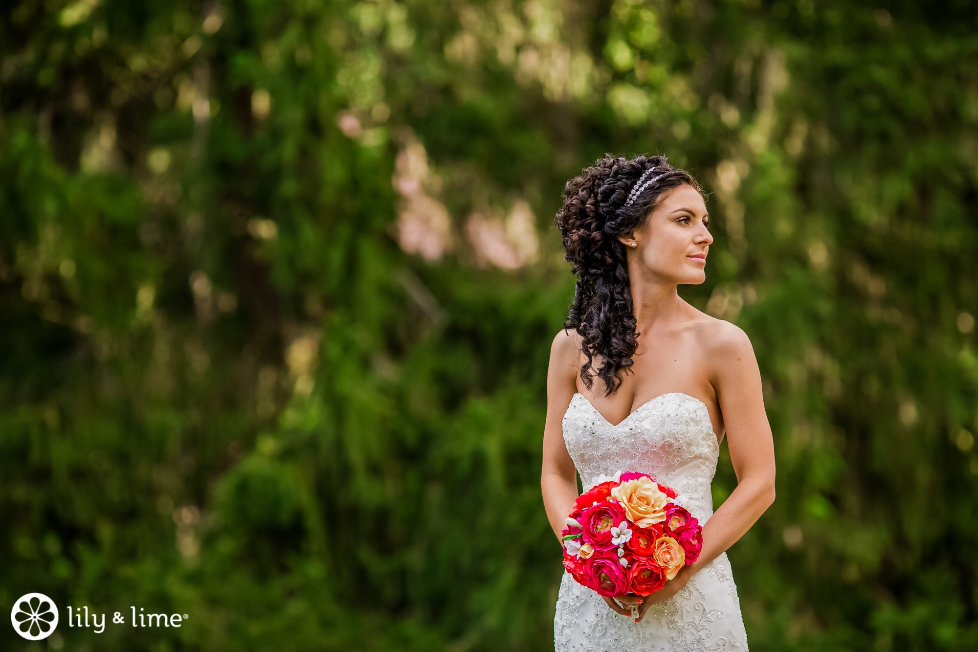 One shoulder dresses were pretty much made for dramatic over-the-shoulder photo moments. Are we wrong? Maximize the red carpet style glamour of a one-shoulder dress with a side-swept updo or fishtail braid. You don’t want to distract from all that attention your shoulders are getting.
