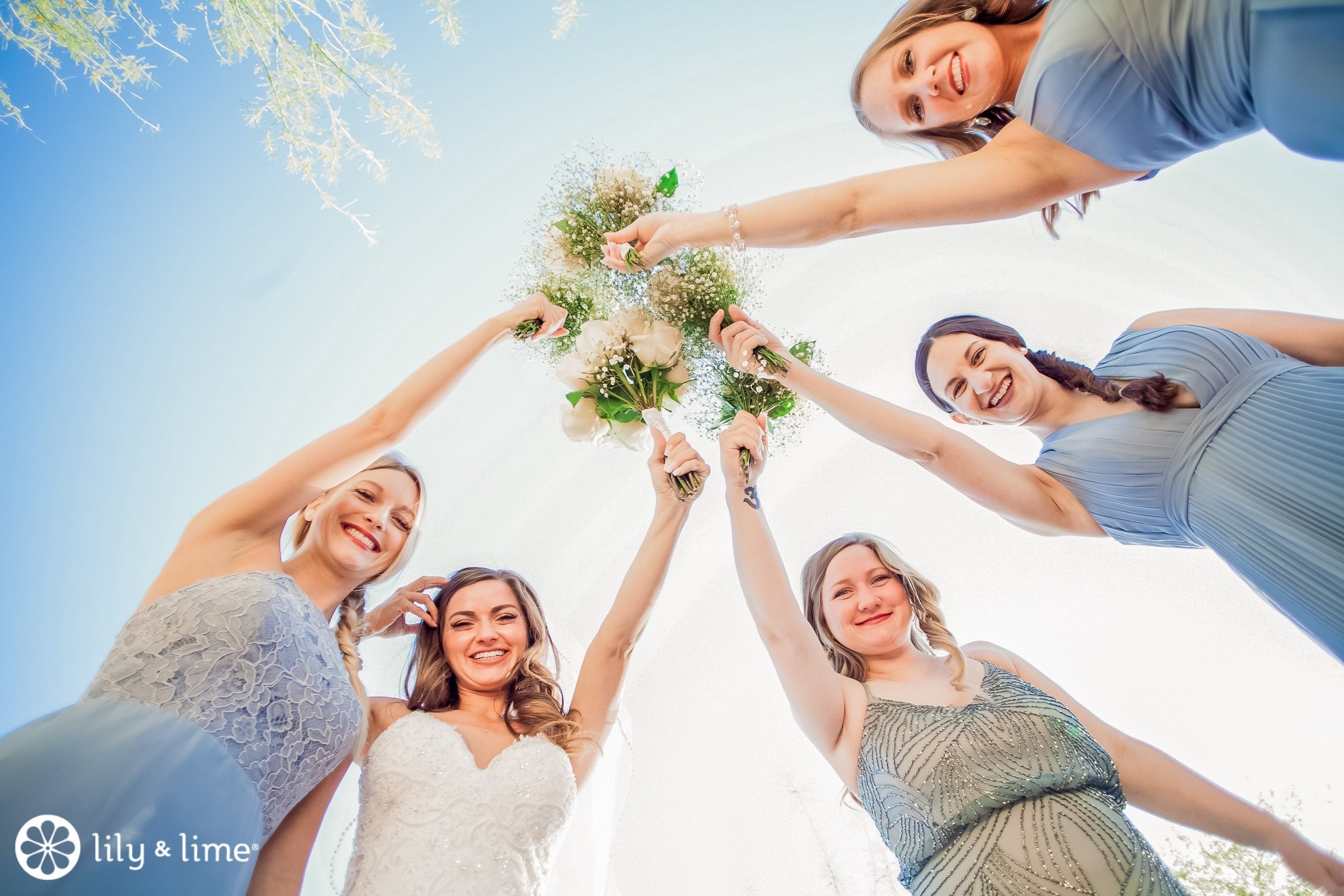 What makes the perfect bridesmaid group photo? Maximum impact with minimum effort. You'll be busy enough on the wedding day that you don't need to spend an hour laboring over the perfect shot, especially since there are several bridesmaid group photo opportunities that don't require much work at all! With a little pre-planning, you'll have some of your favorite photos with your friends and family.