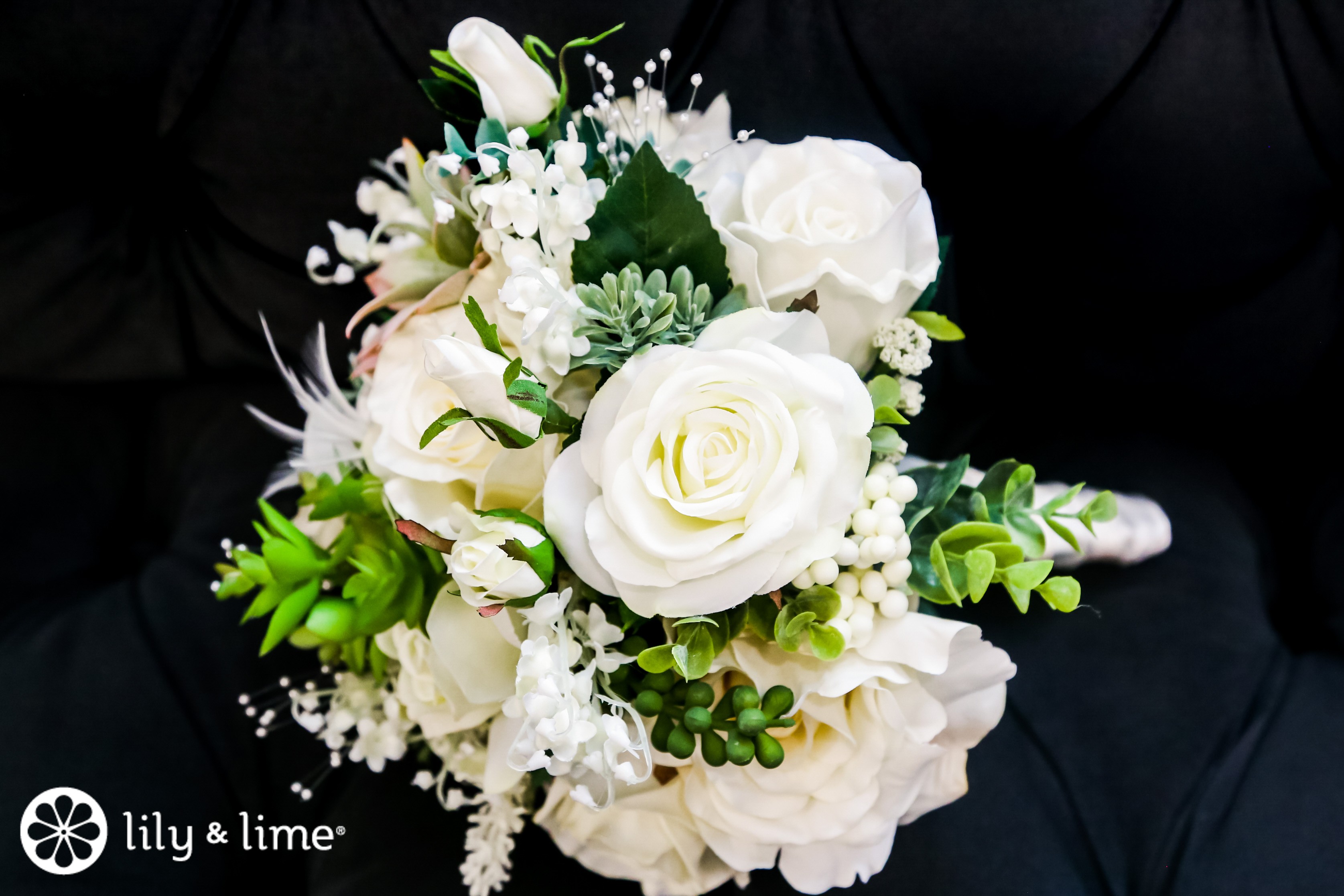Wedding bouquet arrangements should be easy for you to make because they should reflect your personality and come from the heart. To create your unique mix, choose locally grown flowers, foraged flowers, picked straight from the garden, or fill in with loose stems from a nearby florist or farmers market. Add a final flourish by wrapping the base in ribbon or adding long trails of fabric to give it some flow. A shirt cuff or piece of fabric from your grandmother's wedding dress can also add a touch of sentimentality. Pins, a priceless brooch, or a sentimental object can be used to secure which can go on to become your "something borrowed" idea.